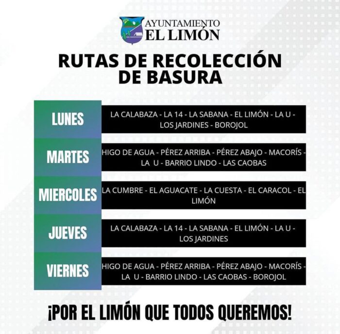 Actualizamos las rutas de recolección de desechos sólidos para que la población se mantenga alerta 🚨 a los días asignados a su comunidad.